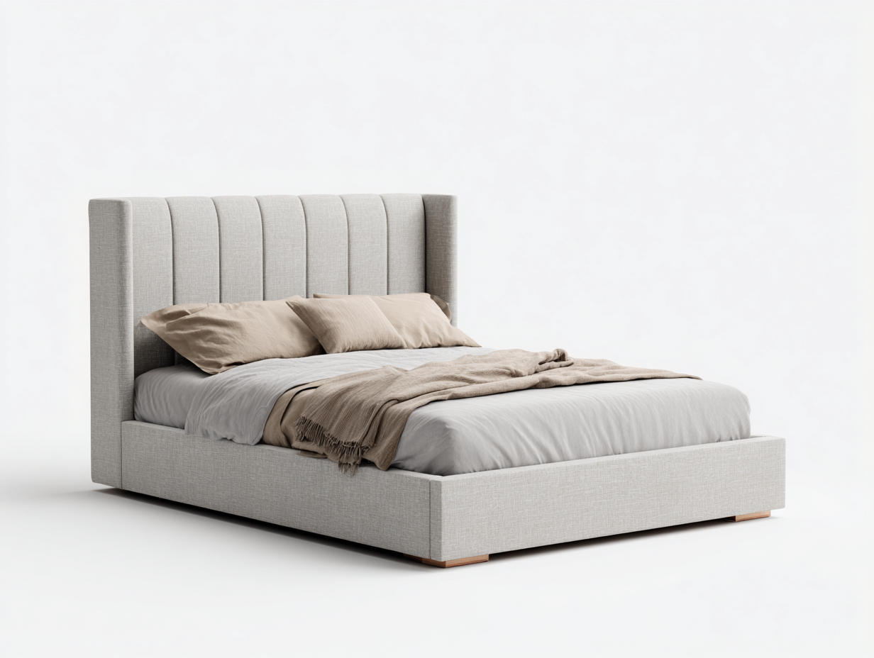 Double Beds Fabric Upholstered Frame 200x150x100 cm - Light Grey-Brown - Bedroom Use - Modern Comfort Design