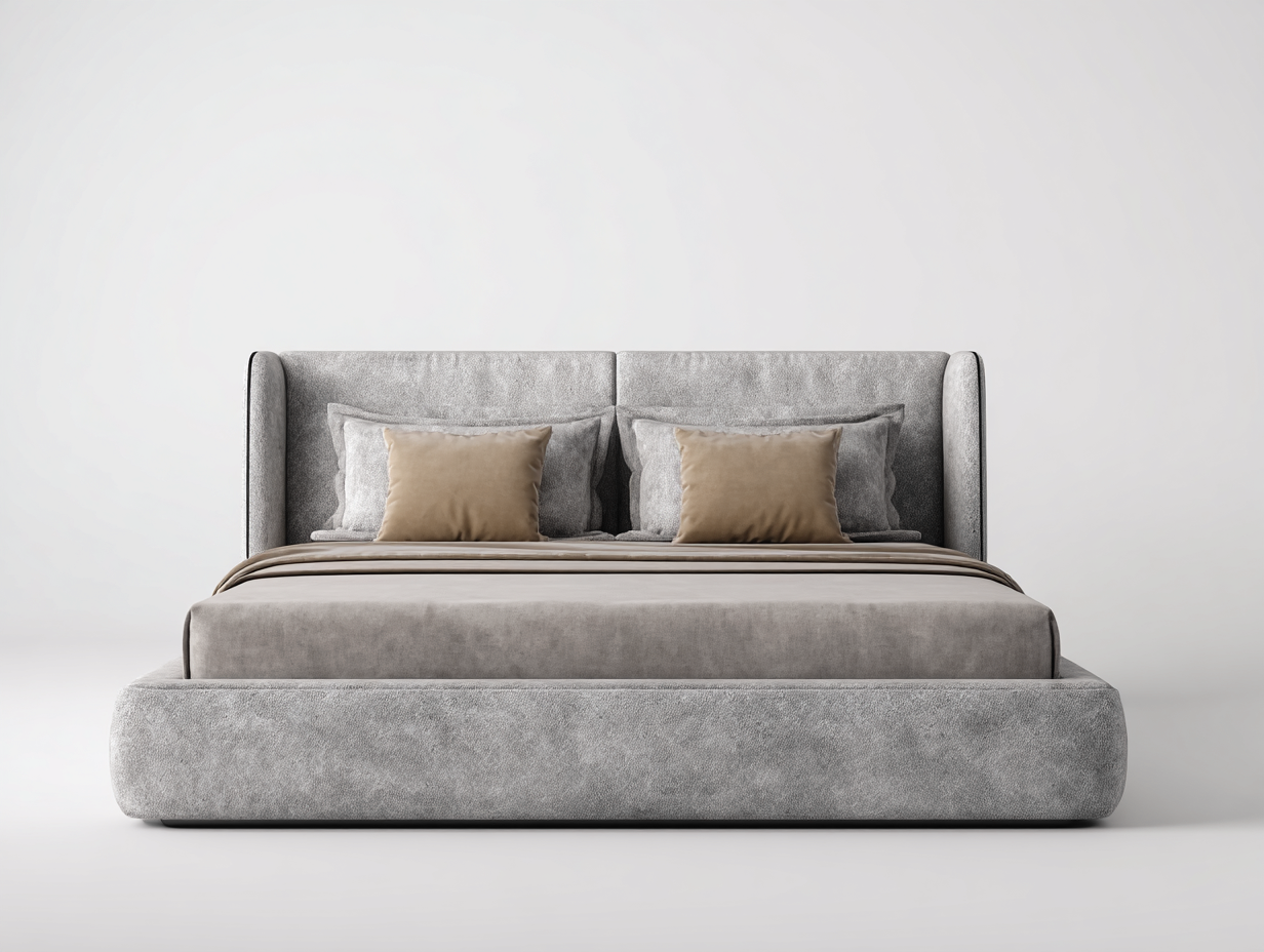 Double Beds - upholstered fabric 200x160x115 cm - grey - modern design