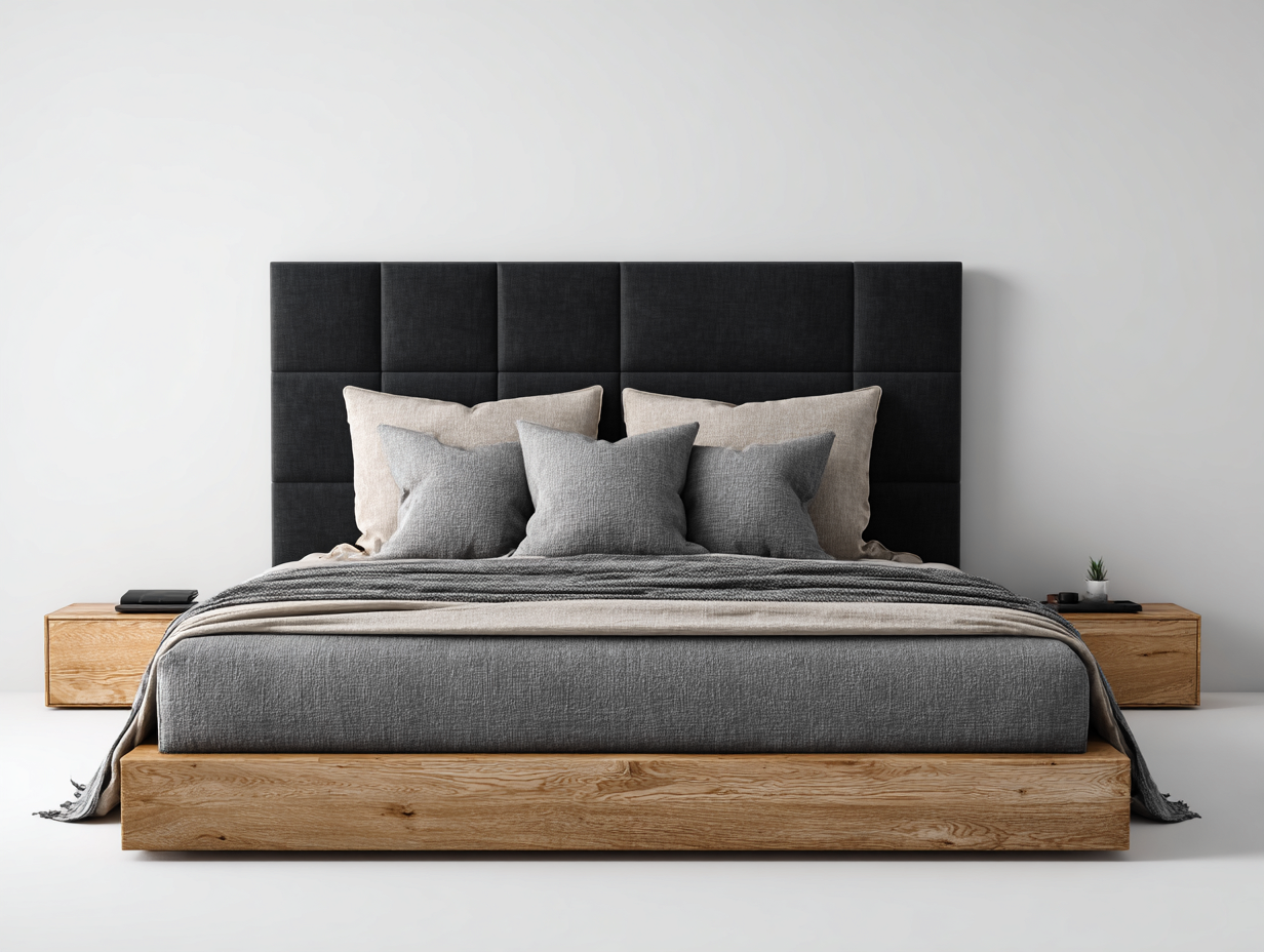 Double Beds Fabric Upholstered Frame 200x150x105 cm - Dark Grey-Brown - Bedroom Use - Modern Minimal Design