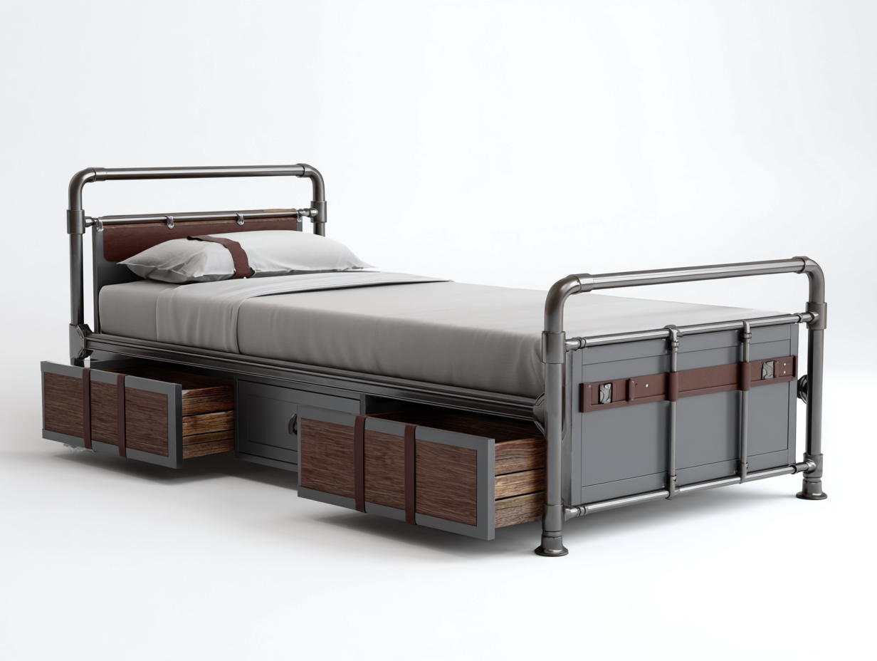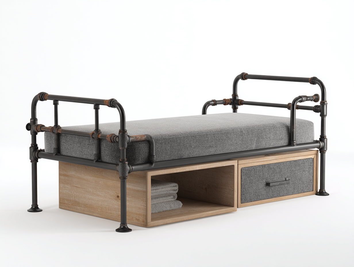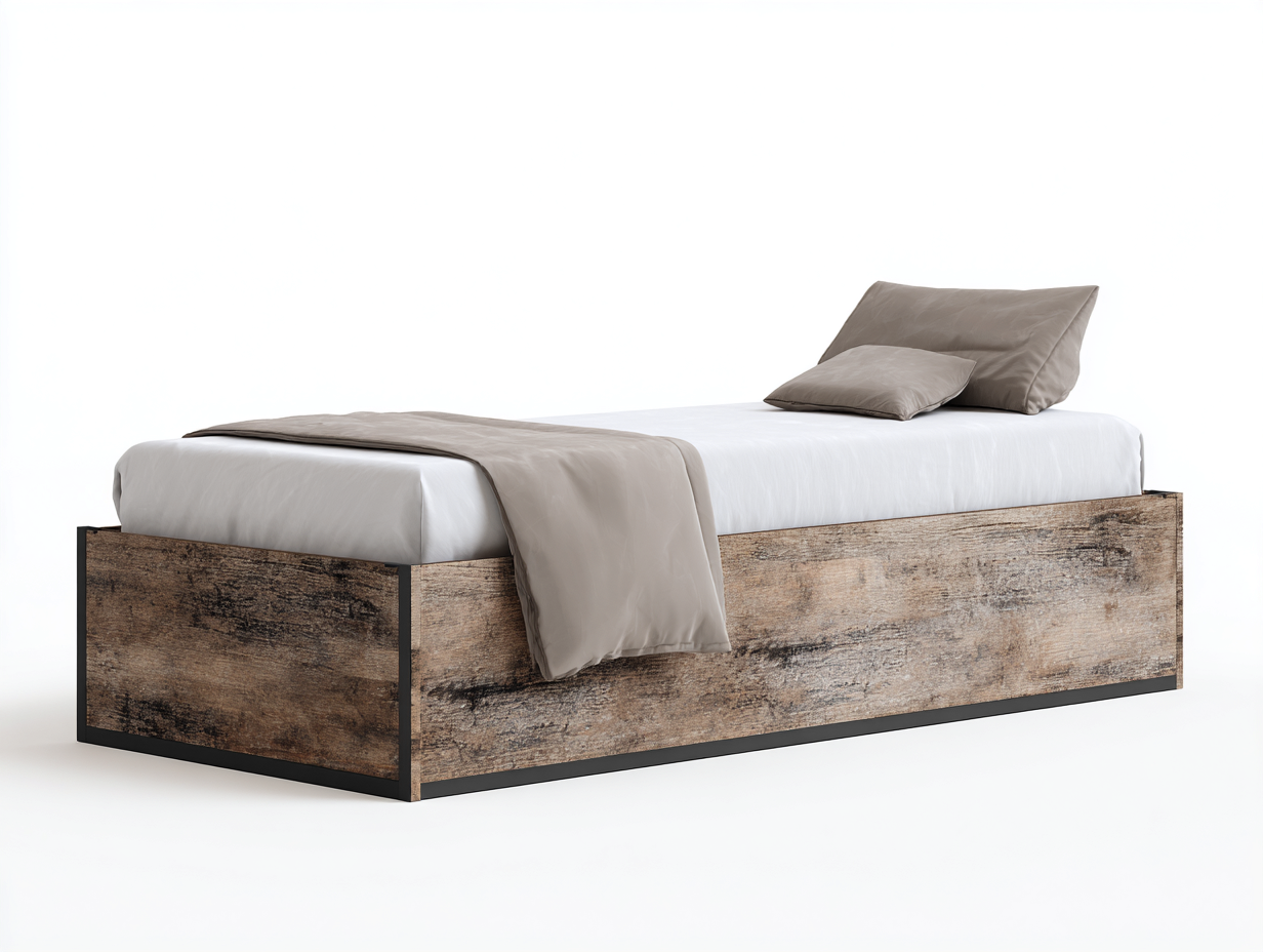 Single Beds - metal and wood 200x100x110 cm - grey-brown - industrial design